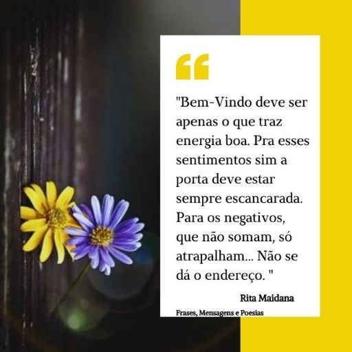 "Bem-Vindo deve ser apenas o que traz energia boa. Pra esses sentimentos sim a porta deve estar sempre escancarada. Para os negativos, que não somam, só atrapalham... Não se dá o endereço. "